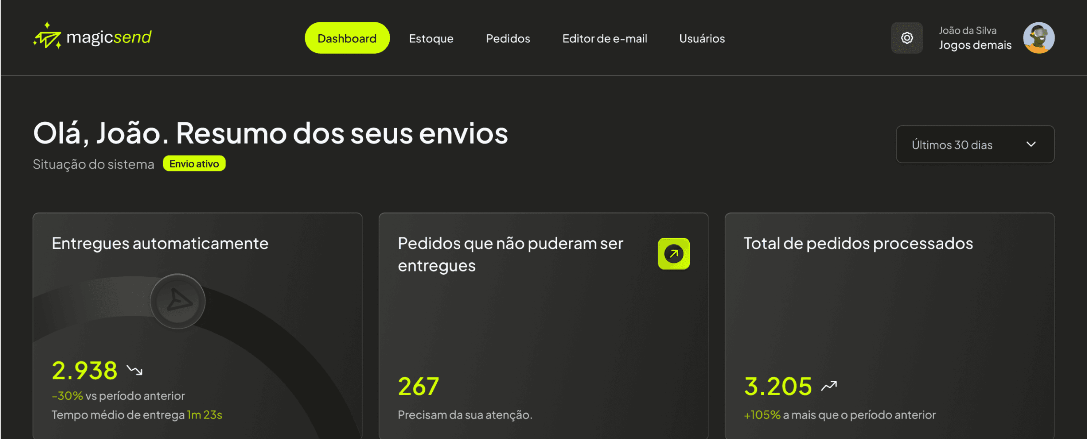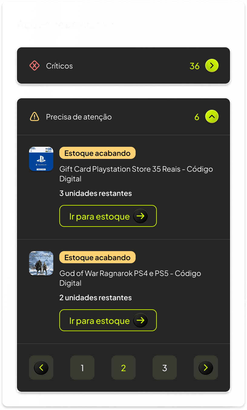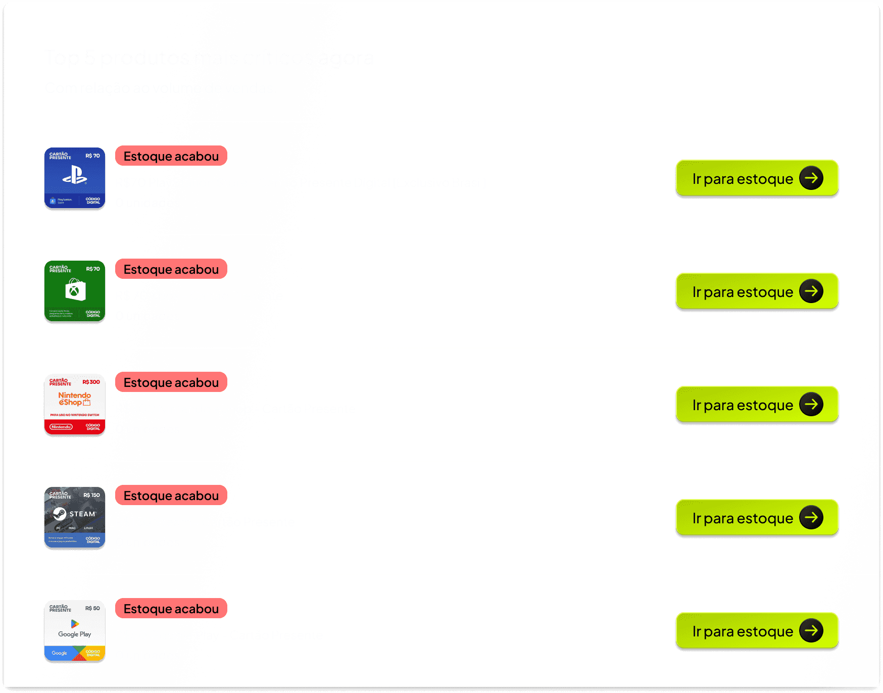 O Magic destaca automaticamente os produtos mais críticos para você agir antes que faltem vendas ou surjam reclamações.